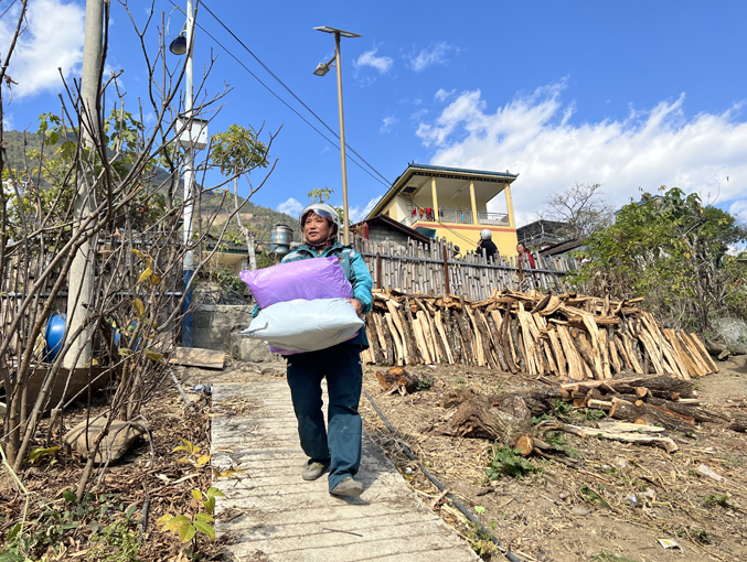 图为全国民族团结进步模范个人、怒江傈僳族自治州泸水市称杆乡邮政所所长桑南才到双奎地村投递邮件。