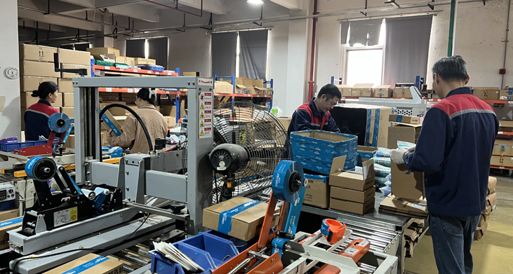 2月26日,广东省佛山市英吉利电器有限公司包装车间一派繁忙景象,工人在半自动打包机前进行流水作业。近年来,该企业剃须刀等产品火爆网络,日均发货1万件。中国邮政速递物流有限公司佛山市南海分公司通过专人入厂揽收、优化运输路由等举措全力做好寄递服务,收寄量占该企业发货量一半以上。2024年,邮政企业收寄该公司系列产品122.3万件,支撑相关产值1.01亿元。
